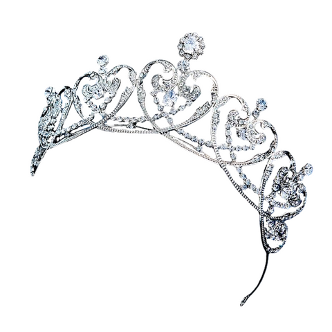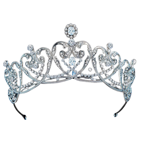 • This lovely tiara replica is modeled after the  Countess of Moy tiara, circa 1906. The original featured six heart-shaped diamond motifs, created by diamond foliate scrolls and garlands, and topped with circular diamonds. This piece was also on show at the Cartier, Paris exhibition in 2013.