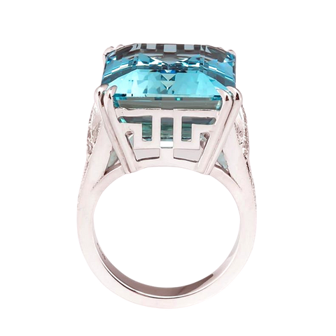 The Duchess of Sussex was seen sporting a gorgeous aquamarine cocktail ring at her wedding reception gifted to her by Harry, The Duke of Sussex. It was borrowed from Lady Diana's collection the Asprey ring. What a touching memento.