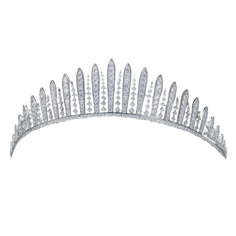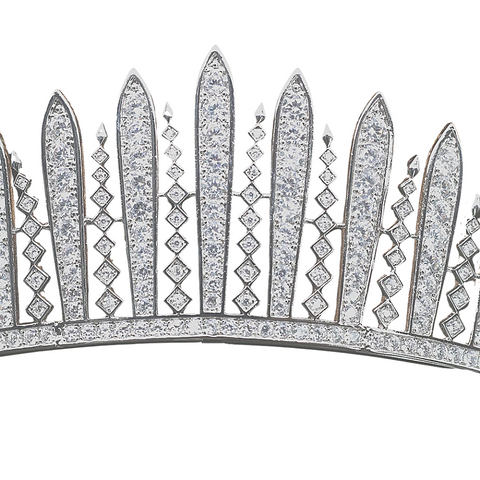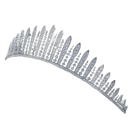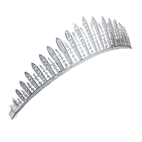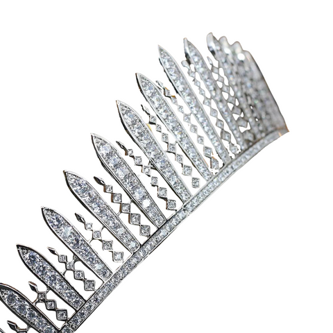• There are a few different diamond fringe pieces in the Queen’s collection, and they can be hard to tell apart. Queen Mary’s Fringe Tiara – made by Garrard in 1919 from a necklace given to Mary as a wedding present by Queen Victoria – is often mistakenly identified as a tiara of Hanoverian diamonds from George III. Queen Mary gave this piece to Queen Elizabeth (the future Queen Mother) in 1936; it was then loaned to Princess Elizabeth (the current Queen) and Princess Anne.